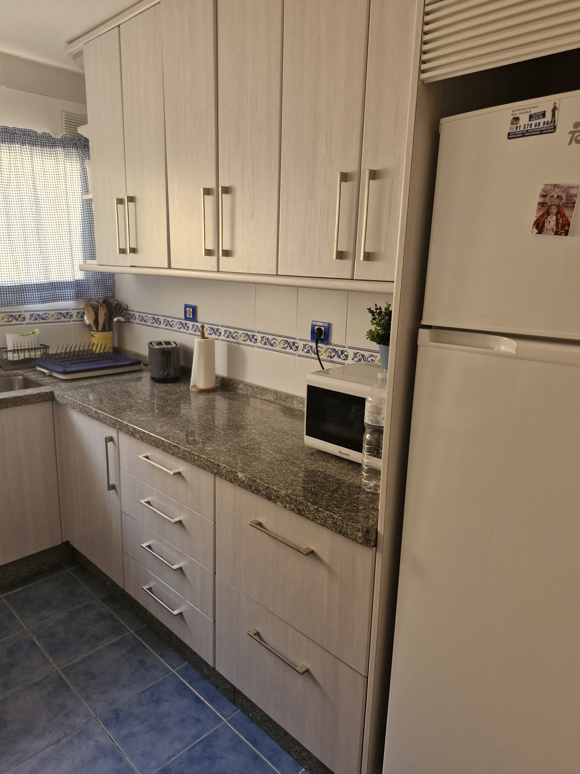 2 makuuhuoneen siisti asunto Los Bolichesin alueella, keskeisellä paikalla. Kauniit maisemat avautuu välimerelle. 2 kylpyhuonetta, molemmat suihkulla. Ilmalämpöpumppu olohuoneessa. Keittiössä pöytäuuni.